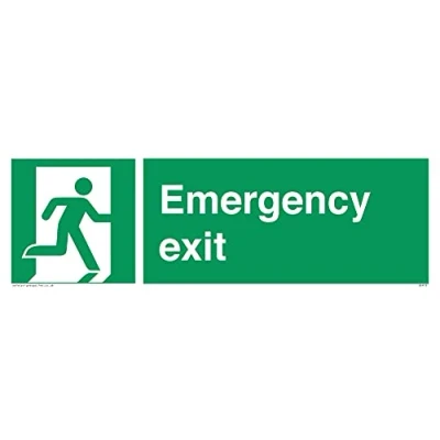 E002 : Emergency exit (right hand) This sign is made from vinyl high tack A stickier sticker. Uses a stronger adhesive to make it more suitable for plastic surfaces like Wheelie Bins or where the sticker might get rubbed. 31 landscape Sign Text: Emergency Exit