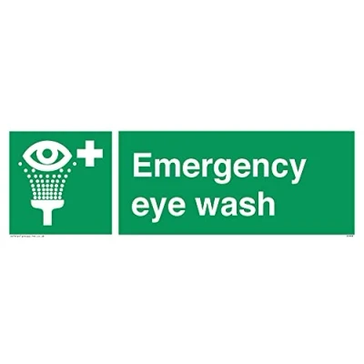 E011 : Eyewash station This sign is made from vinyl high tack A stickier sticker. Uses a stronger adhesive to make it more suitable for plastic surfaces like Wheelie Bins or where the sticker might get rubbed. 31 landscape Sign Text: Emergency Eye Wash
