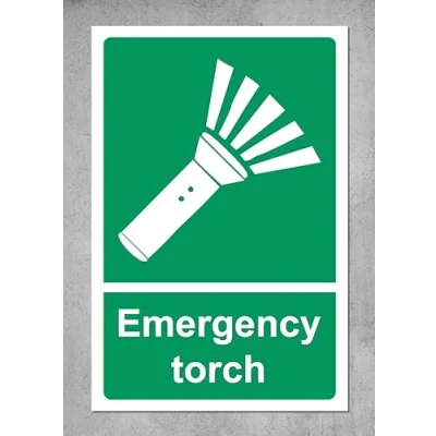 Emergency torch safety sign 1mm Plastic sign Digitally printed and laminated for extra durability Drill and screw in position or use double sided tape to mount onto suitable surface