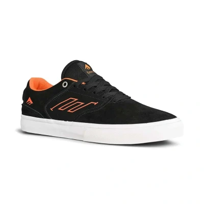 * Emerica The Low Vulc skate shoe is steeped in Emerica heritage, with a well-known and loved silhouette able to lend itself to endless colour variations * Black suede upper with orange pop detail * Jordan Powell limited edition colourway * One-piece toe reduces wear in crucial areas and prevents blowouts, while the comfortable vulcanised sole unit allows for increased flexibility and board feel * Suede material construction featuring leather panelling on the heel, also with a one-piece toecap * Triangle Tread outsole and a die-cut EVA insole * Lightly Padded Tongue and Collar lining * Traditional vulcanised construction * Emerica's G6 foam insole