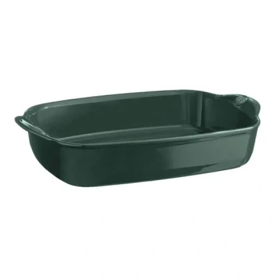 Elevate your everyday cooking and entertaining with the Emile Henry Cedar Green Large Ceramic Baking Dish (42.5cm x 28cm). Perfect for preparing generous portions of lasagna, gratins, roasts, and baked pasta dishes, this large ceramic rectangular baking dish brings elegance and functionality to both the kitchen and the dining table.Crafted from Emile Henry’s signature HR (High Resistance) ceramic, this stoneware baking dish ensures optimal heat diffusion for even, natural cooking—right to the centre—without overcooking the edges. Whether you're baking, roasting, or grilling, it delivers flawless results every time. Plus, it transitions effortlessly from freezer (-20°C) to oven or grill (up to 270°C), offering true versatility for busy kitchens.The ultra-durable enamel glaze resists scratches, chips, and discolouration, making it safe for cutting and cleaning in the dishwasher without compromising its vibrant cedar green finish. The timeless design and generous size make this oven-to-table baking dish ideal for serving straight from the oven, adding a refined touch to any meal.Baking dish dimensions: 8.5cm (H) x 28cm (W) x 42.5cm (L). Capacity: 4L. Weight: 2.6kg.Blending traditional French craftsmanship with modern durability, the Emile Henry large ceramic baking dish is a kitchen essential for home cooks and entertainers alike. Proudly made in France and backed by a 10-year manufacturer’s warranty, it delivers lasting performance and elegant presentation for years to come.