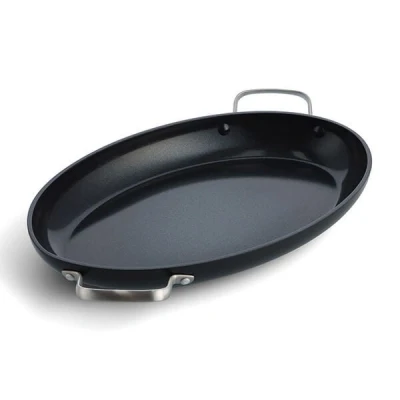 ManoManoGeneral description Combining sophisticated looks with smart technology, the GreenPan Copenhagen Aluminium Non-Stick 40cm Fish Pan is made with premium quality materials for extra durability and professional results. The optimised shape of this fish pan offers 25% extra cooking surface. Technical specifications Material: Aluminium Coating: Thermolon Infinity Pro ceramic non-stick enhanced with diamonds Oven safe: Up to 220°C Size: 40cm Compatibility and accessories Suitable for all hob types, including induction Usage Dishwasher safe, although hand washing is recommended Other information Manufacturer's limited lifetime guarantee (non-stick 5 years)