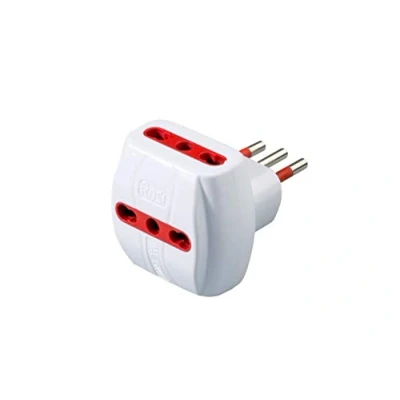 Triple adapter from small 10a 2p+t plug to large 10/16a sockets With current limiter, self-resealable, which in case of overload intervenes automatically by stopping the current flow. 3 x 10/16a bivalent sockets Same size as a normal adapter Colour: white., Manufacturer: Rosi