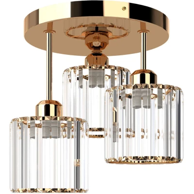 Emitto Crystal Ceiling Light 3 E27 Chandelier Semi Flush Mount Lamp Gold