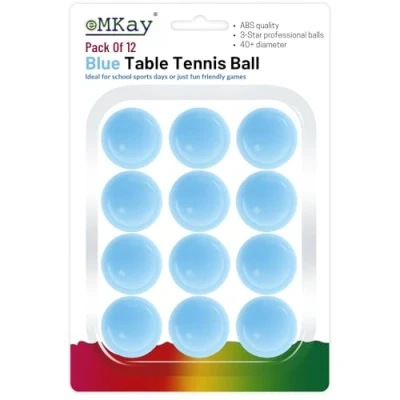 🏓PREMIUM QUALITY – The eMKay Pack of 12 High-Quality 3-Star 40mm BLUE Table Tennis Balls each weighing 2.7 gm, crafted from durable ABS material, offers superior bounce and is suitable for all ping pong tables, ensuring enjoyable family entertainment. 💪ULTIMATE DURABILITY - Say goodbye to inferior balls that disrupt your flow. Our 3-Star 40+ High-Performance ABS Material Training Balls that are available in BLUE are engineered to withstand rigorous games on any ping pong table. Focus on perfecting table tennis shots and strategies without replacements. 🎉MULTIPLE USE - Great For Table Tennis, Ping Pong, Beer Pong, Pet Toys, Lottery Games and Arts and Crafts. 📦PERFECT QUANTITY,SIZE AND WEIGHT - Pack contains 12 3-Star 40mm High-Performance ABS Material plain BLUE Ping Pong Balls each weighing 2.7 gm. 🎨PLAIN WITHOUT LOGO - Each ball is a plain colour so with this many balls you are sure to cover all of your craft and gaming needs and have more spare! 💸VALUE FOR MONEY - Unlike other balls, eMKay Table Tennis Balls maintains a great bounce which makes it idea for playing party games like beer pong and ping pong for hours and hours without changing shape or splitting. ✅CE MARKED UK SELLER SAFE TO PLAY - It's made from safe, non-toxic ingredients and will not stick to your hands. All our products are tested to the highest UK CE standard to ensure the safety of your children, please be careful when comparing with others. ✅COLOUR DISCLAIMER - Actual product colour may vary from the images shown. We do our best to ensure that our photos are as true to colour as possible. However, due to photographic lighting sources, inconsistencies of various monitors settings, we cannot guarantee that the colour you see accurately portrays the true colour of the product. Furthermore, every individual may see these colours differently. Screen images are intended as a guide only and should not be regarded as absolutely correct.