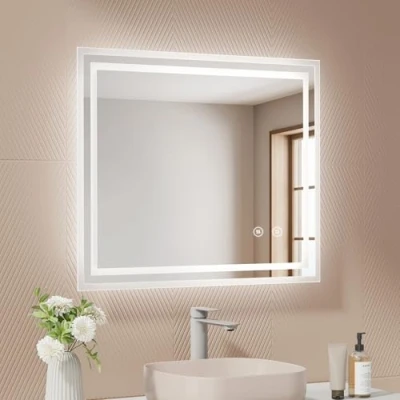 Bathroom mirror with LED light: The EMKE 60 x 50 cm bathroom mirror with backlight can be hung horizontally or vertically. Create the Perfect Ambience: This bathroom mirror offers cool white light with a color temperature of 6500K and an adjustable brightness level from 10% to 100%. With this wall mirror, you can choose different levels of light intensity to create the ideal atmosphere for every occasion. In the morning, when you do makeup, you can adjust the brightness to a high level to start the day with energy. Flexible Control:The bathroom mirror with lighting is controlled by a touch button. The power button is white and the off button is blue. Even at night, the mirror switch is easy to identify. The mirror has a memory function and can also be controlled via the wall switch in your house, provided that the touch button on the mirror is activated. 【Energy Efficient Design with Anti-Fog Function】The anti-fog function of this bathroom mirror is controlled by a separate button, which makes it safer and more energy efficient. Once the anti-fog function is activated, you will always have a clear image, even in a wet bathroom environment. Innovative Design: This bathroom mirror with lighting has a memory function in case of power outage and automatically turns off after 3 hours of inactivity. You don't have to worry about forgetting to turn off the light, as the mirror lighting automatically turns off after a certain time. The last light color setting is saved in memory.