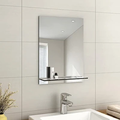 EMKE Frameless Mirror with Shelf Small Bathroom Wall Shaving Storage, Rectangle Vanity Mirrors 45x60cm