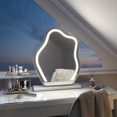 EMKE Hollywood Vanity Mirror with Lights Makeup Smart Touch Control, Memory Dimmable Lights, 3 Lighting Modes, Irregular Cloud Shape Cosmetic Mirror, 580x450mm, White