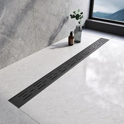 【Invisible shower drain】Lengthen the drainage area to easily cope with the large drainage demand generated by daily water use. Compared with square or round floor drains, linear shower drains have a larger drainage area. 【Matte Black Shower drain size】Linear shower drain size: 900mm, adapter: 40/50mm, installation height: 77-96mm, side row design, please confirm whether your drain hole is side row before purchasing! 【Stainless steel material 】The wet room drain is made of high-quality stainless steel, and its surface is treated by wire drawing process. Prevents corrosion and rust, and has a long service life 【Easy to clean】The cover, filter and siphon of the floor drain can be removed to facilitate cleaning and effectively prevent odor from returning to the room. 【Large displacement design】The linear shower floor drain adopts a shallow "V" design, which is conducive to rapid water flow. The water flow speed: 30L/min. Suitable for bathroom, shower, balcony, kitchen, laundry and other places.
