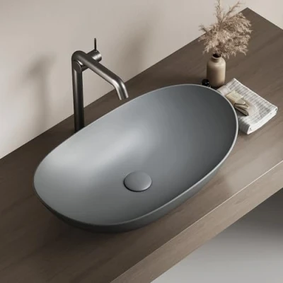 EMKE Oval Countertop Washbasin 61.5 x 36 15.5 cm, Ceramic, Matt Grey