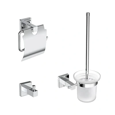 【Specifications】Dimensions (L x W x H): paper towel holder with lid: 145 x 70 x 152 mm; towel hook: 50 x 66 x 50 mm; toilet brush: 160 x 123 x 370 mm. Colour: chrome Premium material: the towel holder set is made of 304 stainless steel, which has good waterproof, rust-proof and corrosion-resistant properties. Easy installation method: the bathroom accessory set has two installation methods: self-adhesive with glue or hole drilling installation. One-stop shopping: let you buy everything at once. The bathroom set is suitable for use in bathrooms, toilets, guest toilets, hotels, restaurants etc. 【Package contents】1 x toilet paper holder with lid, 1 x towel hook, 1 x toilet brush holder (including toilet brush), self-adhesive adhesive set, punch screws set