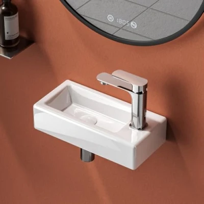【Corner Sink DIMENSIONS】: Perfectly sized at 36 x 18 x 9 cm, this compact basin is ideal for bathrooms, kitchens, cloakrooms, or en suites. It can be wall-mounted, placed on a countertop, or integrated into a vanity, making it ideal for any bathroom update. (Basin only; taps and accessories not included) 【Space-saving Design】: Designed to maximize space in compact areas, this small cloakroom basin enhances the functionality and style of smaller bathrooms. Its slender rim and streamlined form add a modern touch to any space-limited environment. 【Material Quality】: Made from high-quality ceramic and finished with a non-toxic, lustrous glaze, this small sink excels in durability and scratch resistance. Its anti-fouling surface simplifies maintenance, ensuring a consistently pristine and inviting appearance. 【Easy Installation】: Engineered for simplicity, this wall-hung basin includes a quick-fit connection that makes installation a breeze. It is compatible with all standard plumbing systems, ideal for both DIY enthusiasts and professional installers. 【EMKE Support】: Committed to excellence, EMKE has enriched over 18,000 homes with top-quality, safe products. Our dedicated customer service team is ready to guide you from selection through installation of your small sink, ensuring a hassle-free and fulfilling experience., Manufacturer: EMKE