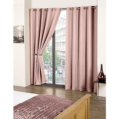 DARKNESS, PEACE AND QUIET: Woven velvet blackout fabric with multi layered weave for improved thermal properties, noise reduction and keeping up to 90% of light out EASY TO HANG: The metallic eyelet header of these ring top thermal curtains makes them easy to install. Simply slide them onto your curtain rail and you’re ready to go ENERGY SAVING: These thermal insulating blackout curtains reduce energy bills by keeping the heat in during winter and out during summer VERSATILE: Use the range of suitable colours for the bedroom, living room or anywhere around the house to add a level of elegance and class to any room SOFT NATURAL DRAPE: The unique process used to create this fabric gives it a matt velvet finish and a naturally soft drape. Fully machine washable, these thermal blackout curtains are made from 100% polyester for easy maintenance