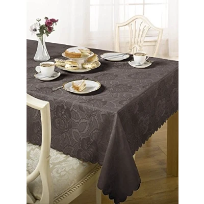 Emma Barclay Damask Rose Jacquard Table Cloth in Chocolate 70x108 (178x274cm)