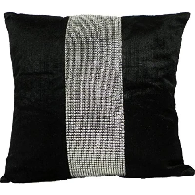 Emma Barclay Eclat Diamante Panel Velvet Cushion Cover in Black 22x22 (50x50cm)
