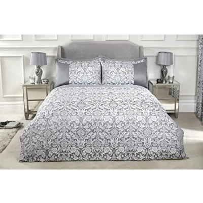 SOPHISTICATED DESIGN: Luxurious jacquard fabric with a subtle design, paired with a soft brushed microfibre reverse. ATTENTION TO DETAIL: Satin borders on both the head of the duvet and the pillowcases bring balance to the design. SET CONTENTS: Includes 1 duvet cover and 2 pillowcases in the Double and King, 1 pillowcase in the Single. MACHINE WASHABLE: Easy to care for and maintain, perfect for daily use.