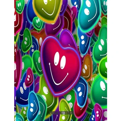 Emoji Notebook: Cute Hearts Emojis Black Wide Ruled Composition Book Blank Journal