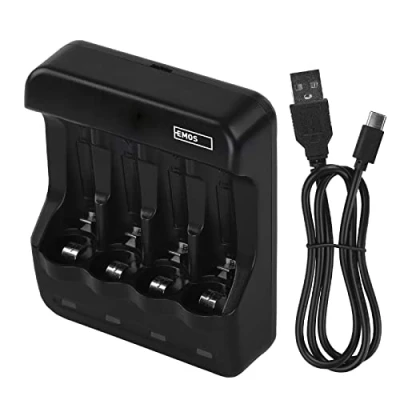 Our intelligent charger charges micro batteries (AAA) and Mignon batteries (AA) with charging current 300 mA and ensures that everything is in order during charging All 4 charging slots can be charged independently and without mutual influence. All rechargeable batteries can be combined simultaneously with each charge This charger is equipped with function of detecting defective or non-rechargeable alkaline batteries as well as reverse polarity protection. When faulty cells are used, the charging LED indicator lights green. When reverse polarity, the charging indicator LED does not light up With the included 60 cm long cable, this universal charger can be powered anywhere and anytime from any device that has a USB port The LED indicator lights allow easy overview of the charging process and serve as a warning signal in case of faulty use