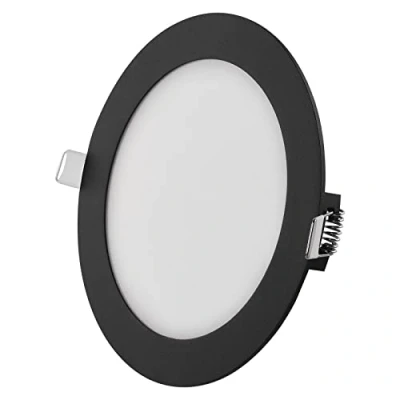 Black round 12.5 watt LED recessed spotlight with the brightness of 1050 lumens replaces the conventional 70 watt bulb and is suitable for the hallway, staircase, kitchen, office, lobby, study, living room, children's room or bedroom This LED recessed light including LED driver (driver/transformer) with aluminium body and diffuser made of PC plastic provides a flicker-free light with 30,000 hours life and beam angle 110° The appropriate colour temperature is selected when attaching the light to the ceiling with the slider on the scale from warm white to neutral white: 3,000 K (W) / 3,500 K (CW) / 4,000 Kelvin (C) IP20 rating: suitable for dry interiors, the diffuser side has increased protection against solid foreign bodies (IP40). Dimensions 170 x 170 mm, installation depth 21 mm, 155 mm installation hole necessary for easy installation in plasterboard This is a "surrounding product" according to the new energy efficiency regulation: a light that can be disassembled to check the light source included. The included light source has energy efficiency class F on the new scale from 1.9.2021