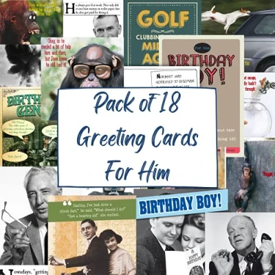 18 Individual Humorous Birthday Cards For Him Each card comes with a suitable sized envelope Some Cards are blank, some have Birthday messages Pack of 18 random cards Cards vary in dimensions