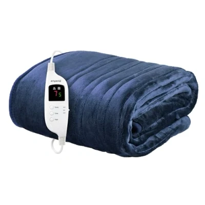 Emperial Luxury Heated Blanket Electric Extra Large Throw with Digital Remote, 9 Heat Settings & 9hr Timer, Machine Washable Fleece 160cm x 130cm (Navy)