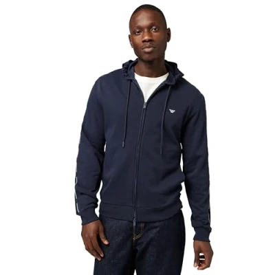 Emporio Armani Basic Loungewear Hooded FULL ZIP Pyjama top, Men's, Size: Large, Blue