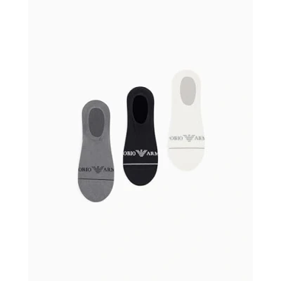 Emporio Armani Footie 3 PACK Trainer socks, Men's, Size: S/M, Black/white/quietshade