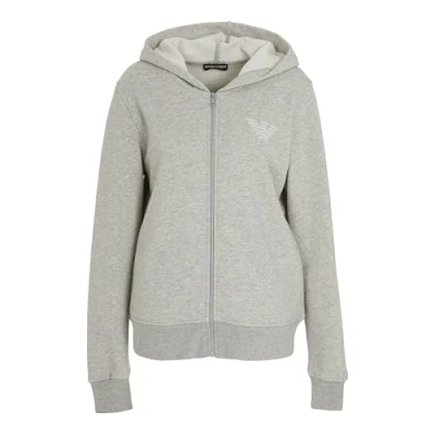 Emporio Armani Hooded FULL ZIP Pyjama top, Women's, Size: XS, Warm grey melange