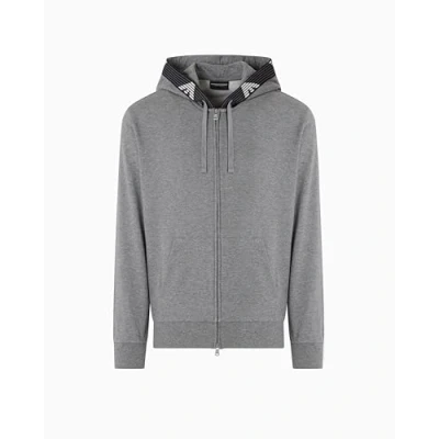 EMPORIO ARMANI Man Basic Terry Hoodie Zip Sweatshirt Grey XL