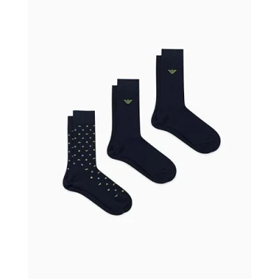 EMPORIO ARMANI MAN'S ALLOVER EAGLE 3 PACK SOCKS SHORT BLUE TU