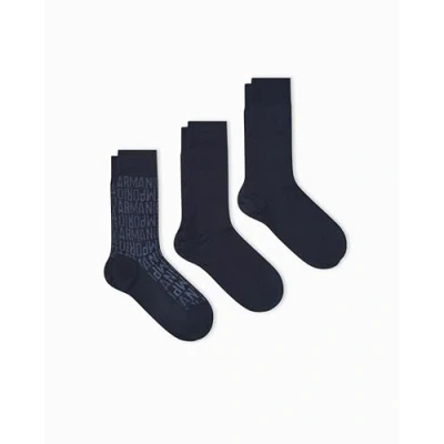 EMPORIO ARMANI MAN'S GIFT 3 PACK SOCKS SHORT BLUE TU