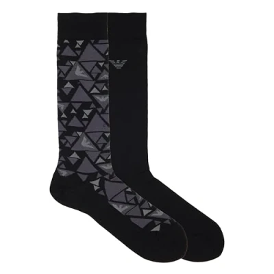 EMPORIO ARMANI MAN'S GRAPHIC ALLOVER 2 PACK LONG SOCKS BLACK TU