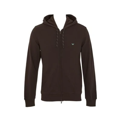 Emporio Armani MAN'S ICONIC PIQUET HOODED FULL ZIP SWEATSHIRT BROWN M