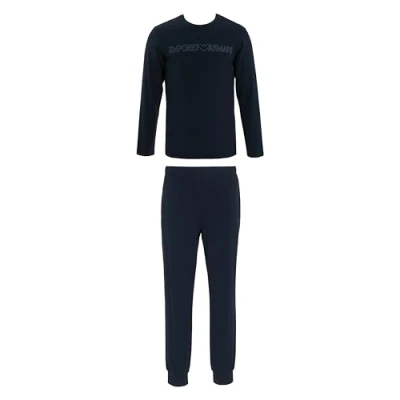 EMPORIO ARMANI MAN'S MEGALOGO PAJAMAS WITH CUFFS SET BLUE S
