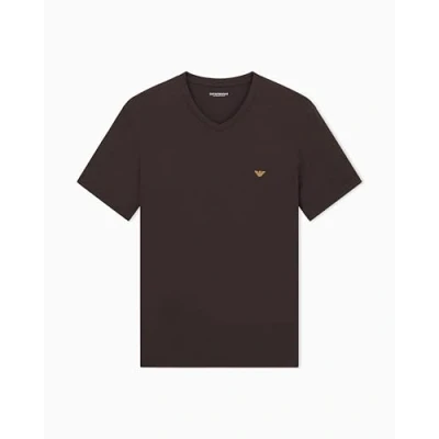 EMPORIO ARMANI Man's Soft Modal V Neck T Shirt Brown M Fitted FIT