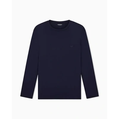 Emporio Armani MAN'S TECH WOOL LONG SLEEVE CREW NECK T SHIRT BLUE L REGULAR FIT