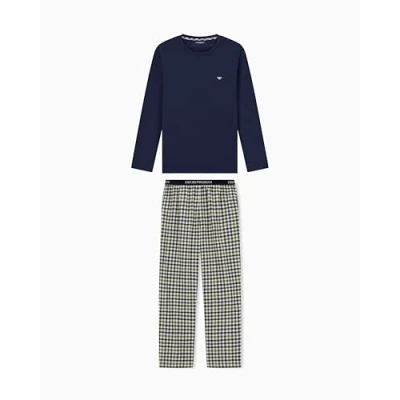 EMPORIO ARMANI MAN'S YARN DYED WOVEN LONG PAJAMAS BLUE L