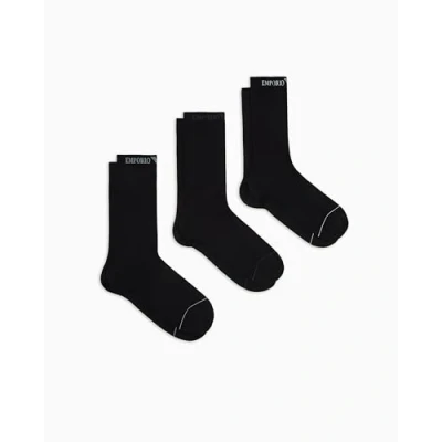 EMPORIO ARMANI MAN'S EXTENDED LOGO 3 PACK SOCKS SHORT BLACK TU