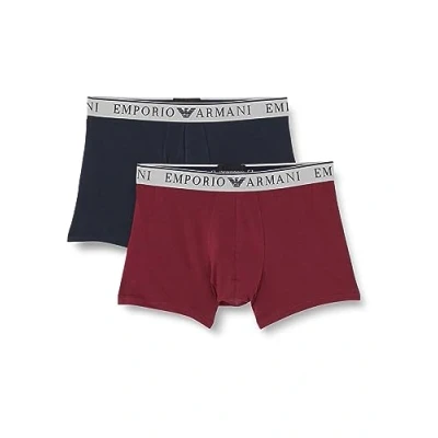 Emporio Armani Men's 2 Pack Endurance Trunk, Borgundy/Marine, S (Pack of 2)