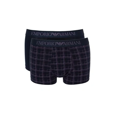 EMPORIO ARMANI Men's 2 Pack Trunk, Check Blue/Armani BL, M