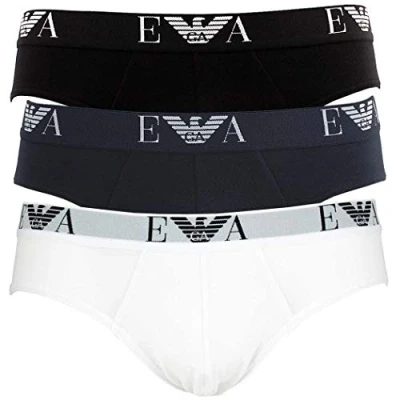 Emporio Armani Men's 3 pack Essential Monogram Boxer Briefs, Multicolour, M UK