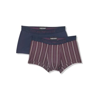 Emporio Armani Men's Classic Pattern Mix 2 Pack Trunk, Stampa Righe/Marine, L
