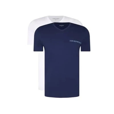 Emporio Armani Men's Core Logoband V Neck 2 Pack T Shirt, Ink/White, S