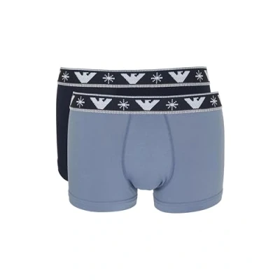 EMPORIO ARMANI Men's Jacquard 2 Pack Trunk, Blue, L