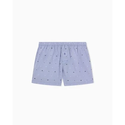 EMPORIO ARMANI Men's Logo Pattern Woven Boxer Shorts, Blue, M