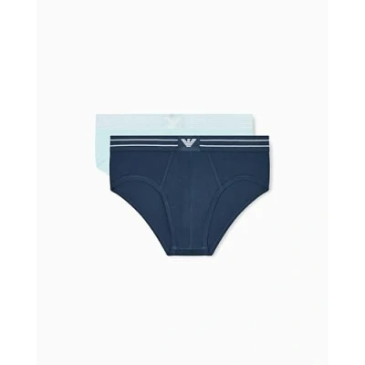 EMPORIO ARMANI Men's LOGOLABEL 2 Pack Brief Blue M