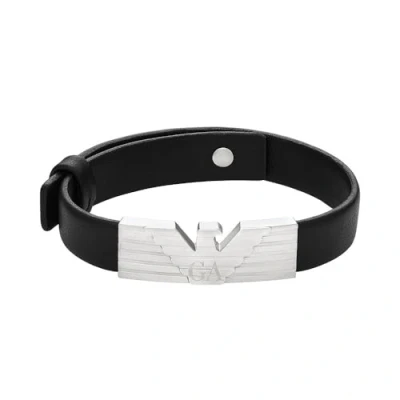 Emporio Armani Men's Stainless Steel and Black Leather Strap ID Bracelet, EGS3075040