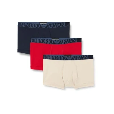 Emporio Armani Men's Stretch Cotton Shiny Logoband 3 Pack Trunk, Nude/RED/Marine, S (Pack of 3)