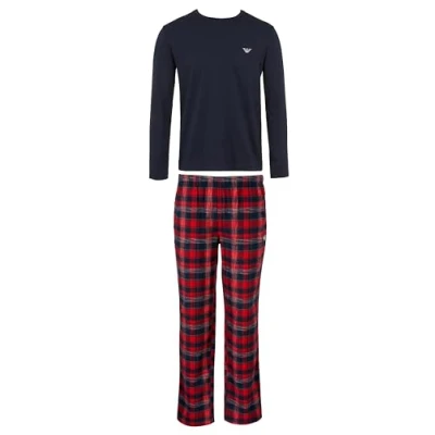 Emporio Armani Men's Tartan Flannel Long Pajamas Set, Marin/SCOZ MAR/Rosso, S