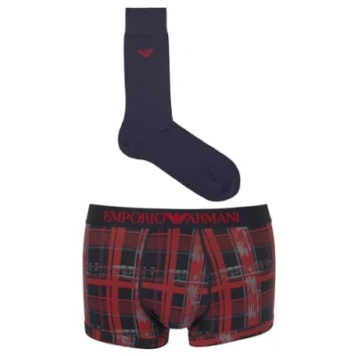 Emporio Armani Men's Tartan Mix Gift Set Socks + Trunk, Stampa SCOZZES/Marin, M